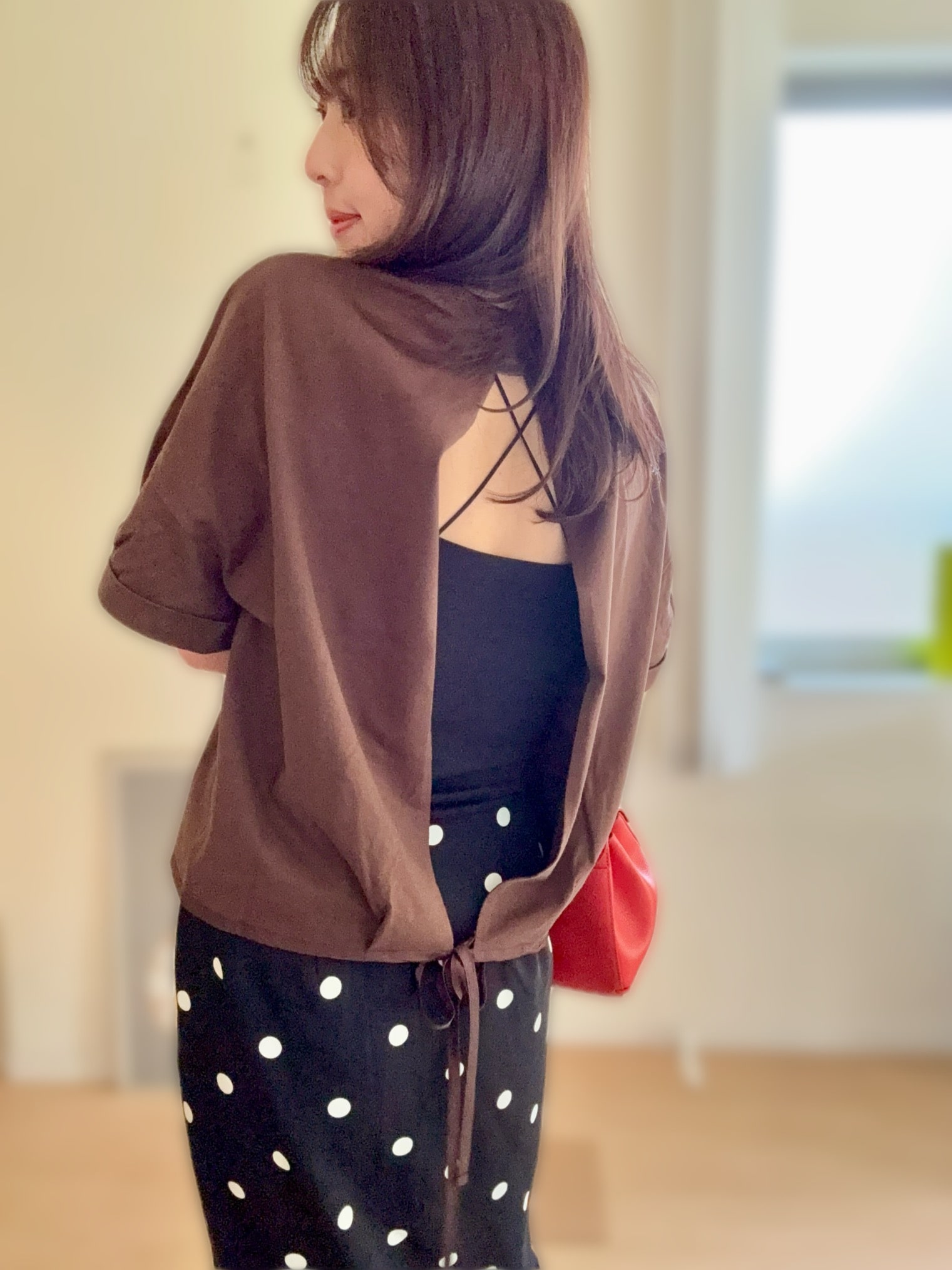 [ブラウンコーデ]Room no.8ネックオープントップス[OOTD]