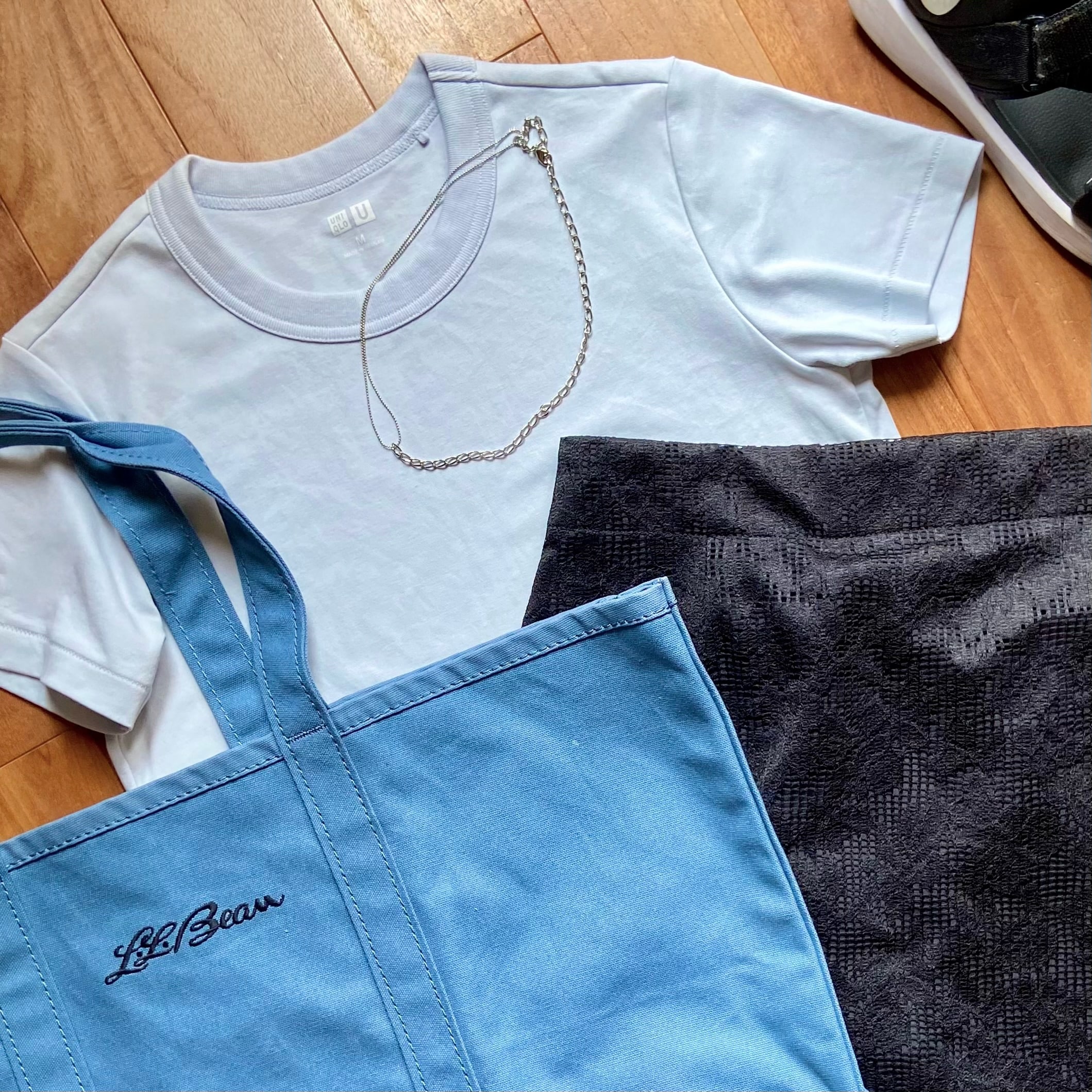 【40代猛暑日コーデ】ユニクロTで水色×黒のワンツーコーデ