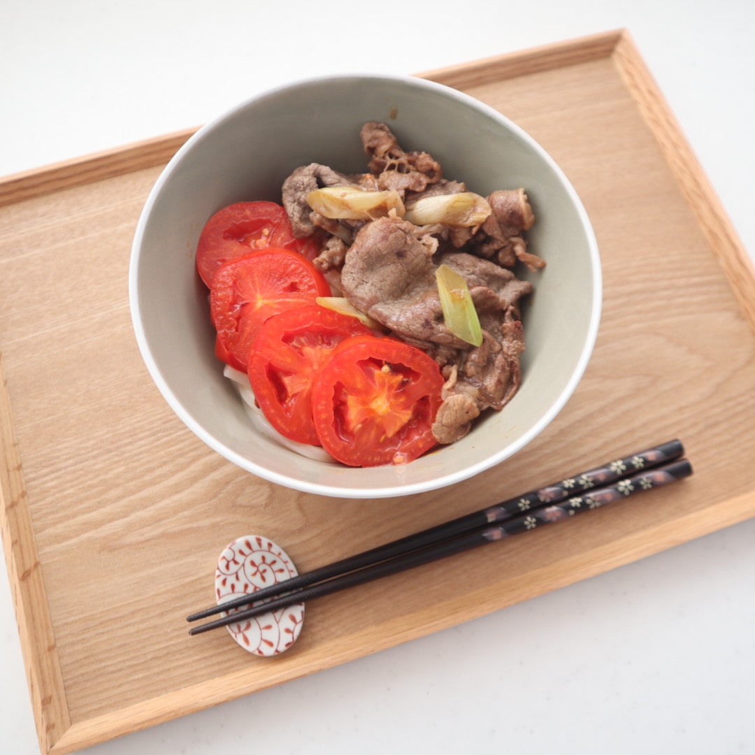 【LEEレシピ】スタミナ満点!大胆のっけ麺『厚切りトマトのせすき焼きうどん』を作りました