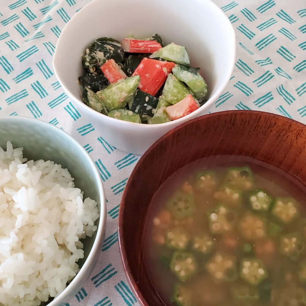【夏野菜で2品】きゅうりでコウケンテツさんのマヨサラダ&オクラで栗原はるみさんのお味噌汁