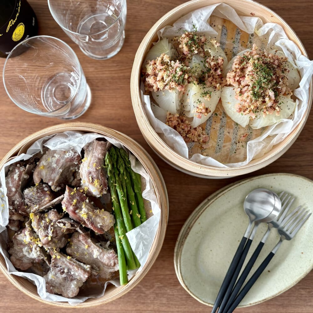【LEE5月号】せいろで蒸す「新玉ねぎ」と「スペアリブ」【ワタナベマキさん】