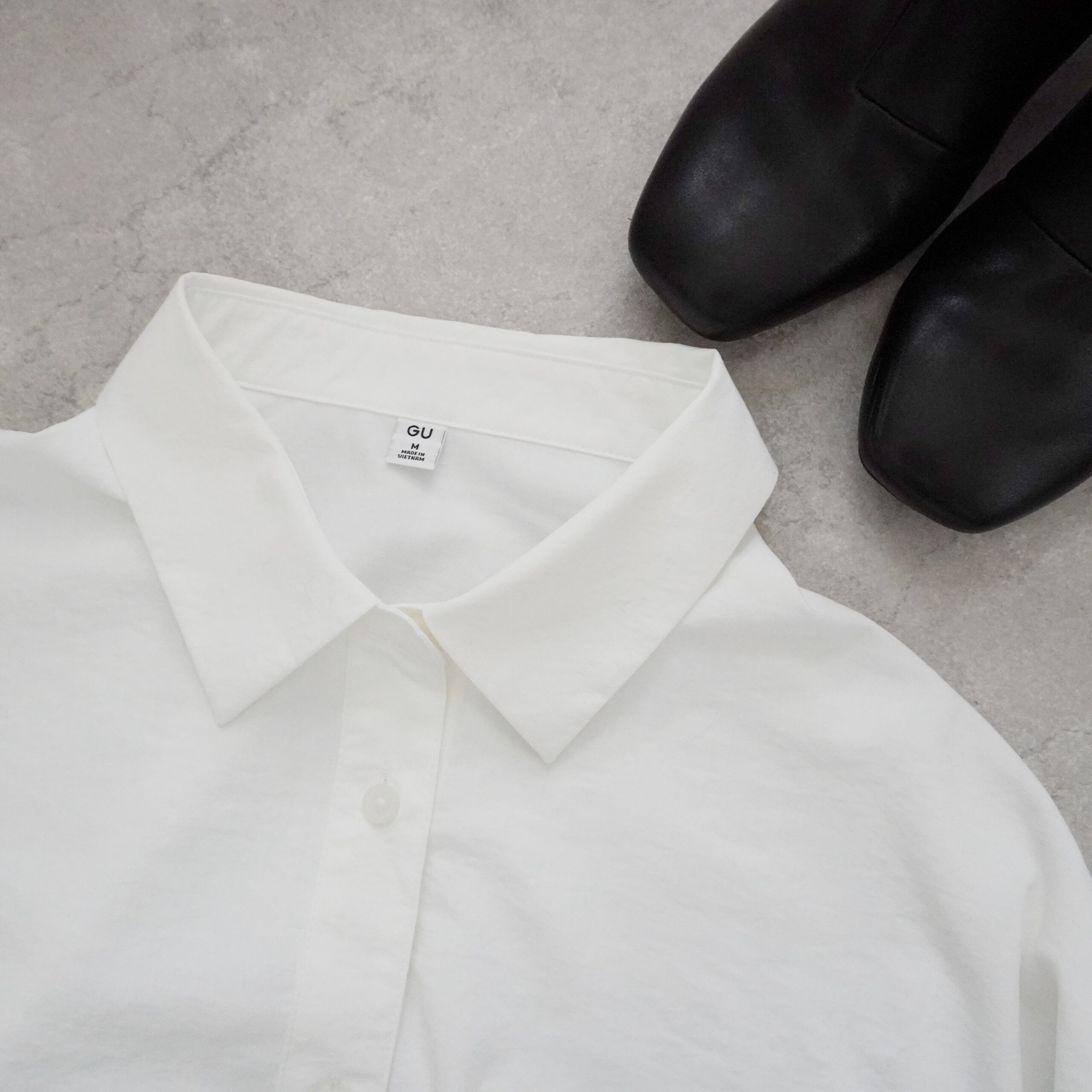 【GU】秋にも使える白シャツ。ドルマンスリーブが着心地抜群です。