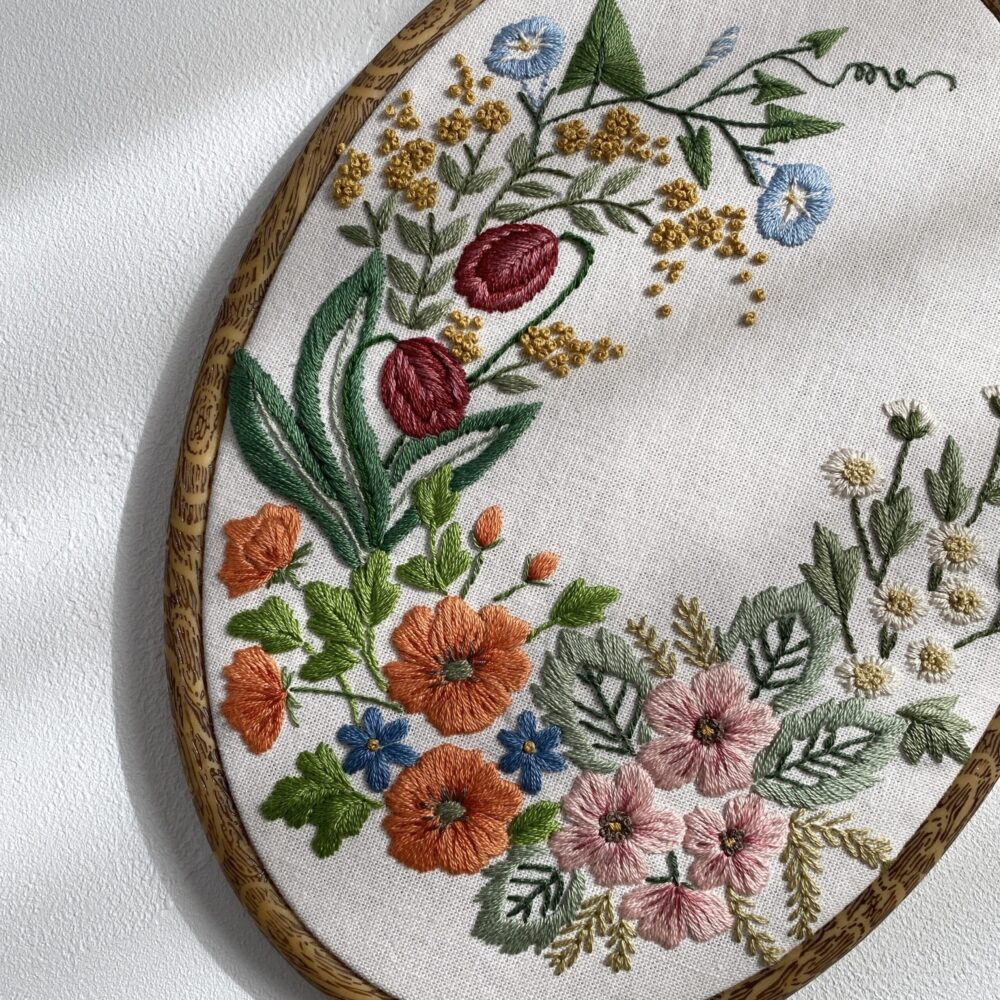 【刺繍】刺しゅうの時間より~華やかなリースが完成
