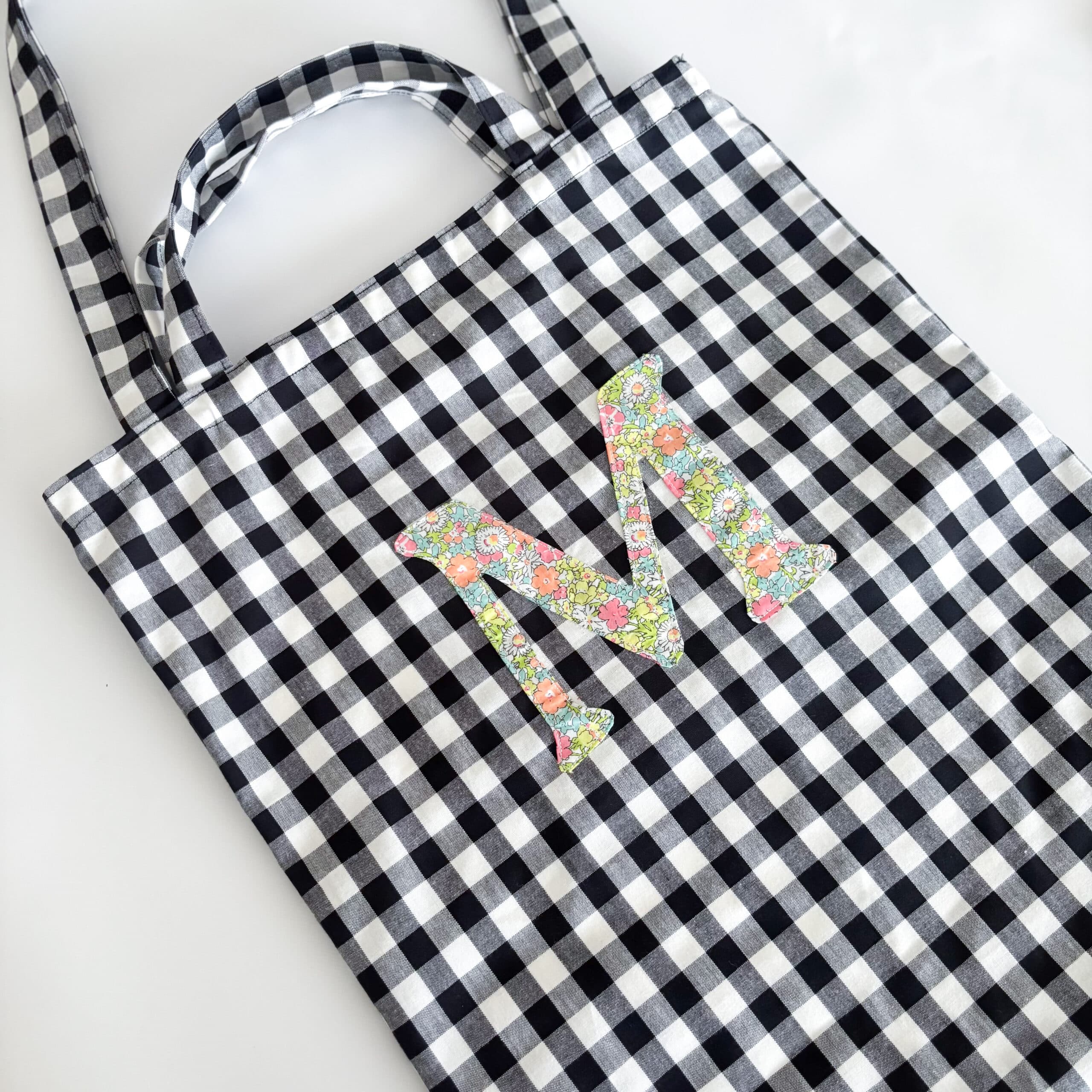 ギンガムチェックのトートバッグを作りました|リバティ生地のワッペンの作り方