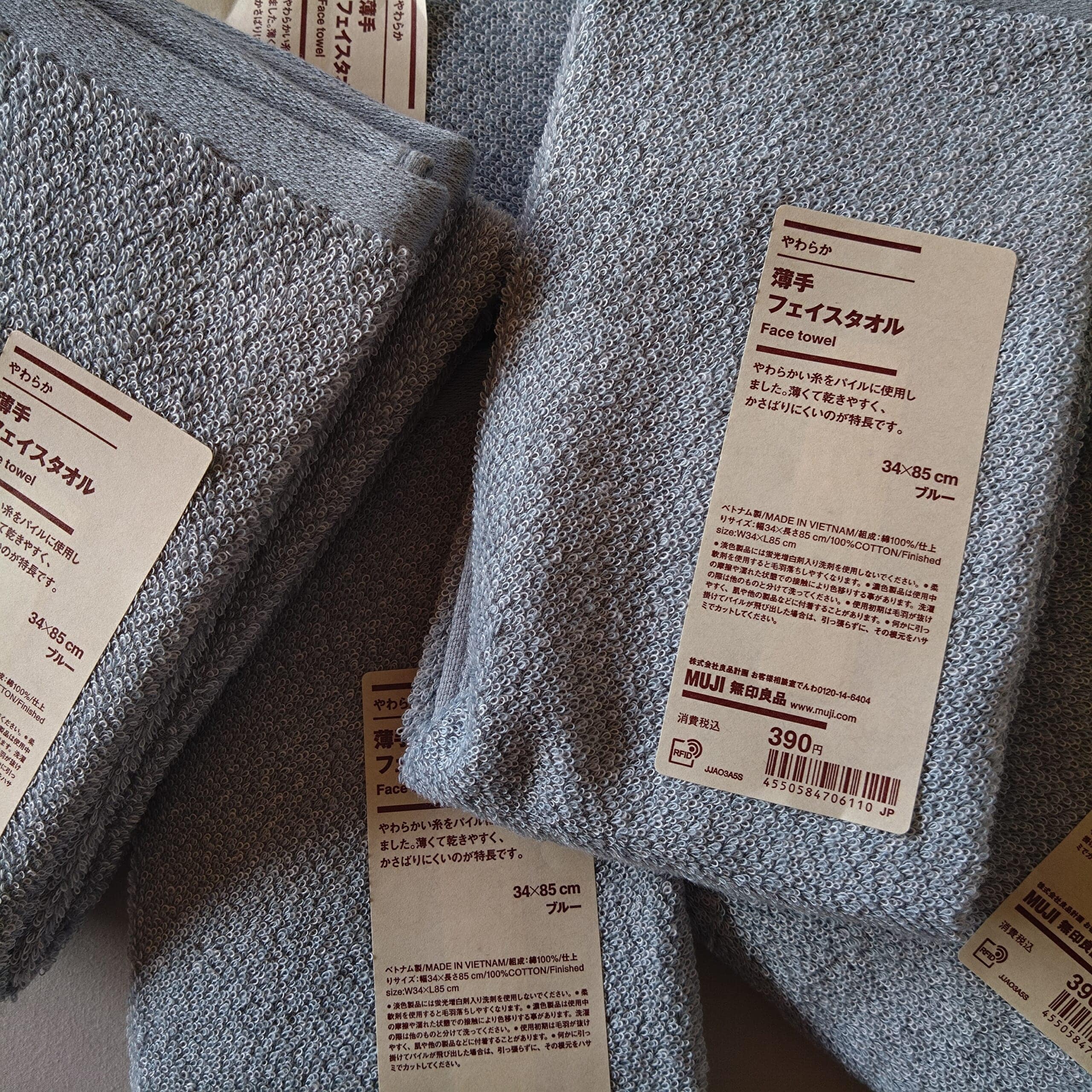 揺るがない定番、無印良品やわらか薄手フェイスタオル