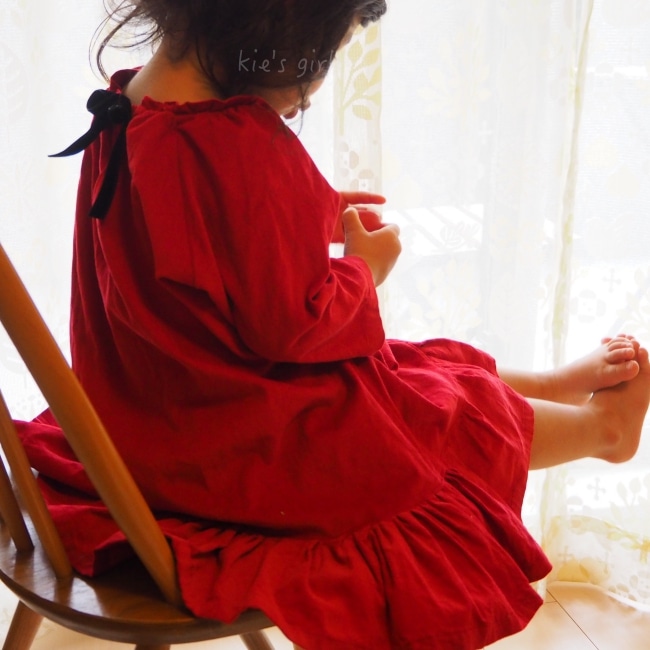 Check&Stripe・子どものフリル衿のブラウスをワンピにアレンジ