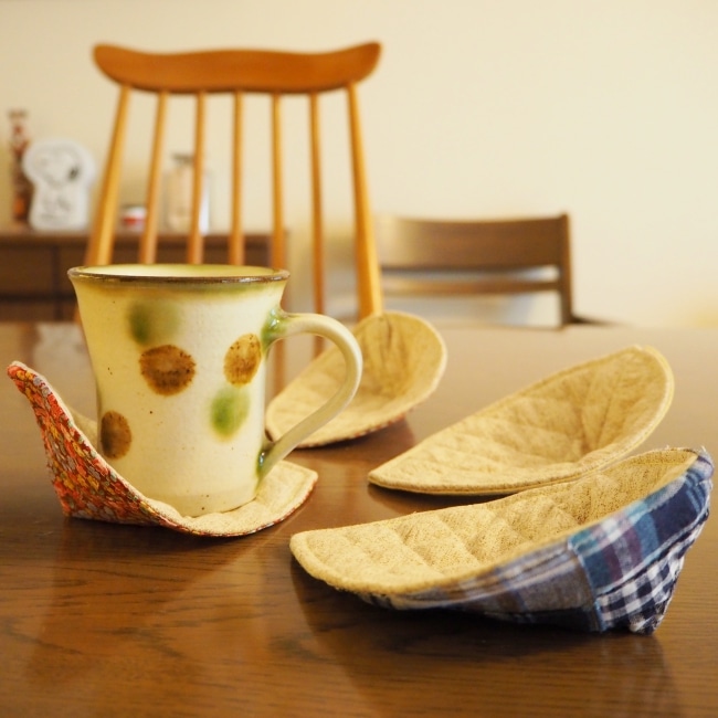 ハギレで花びらコースターを作りました。