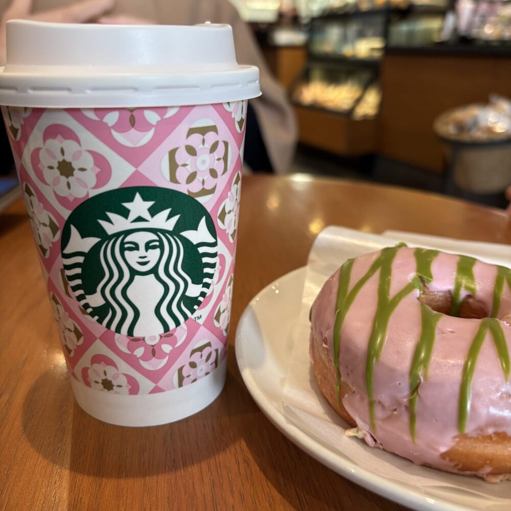 【スタバ・桜シーズン到来】「桜 咲くよ ラテ」と「桜抹茶ドーナツ」を注文しました!毎年楽しみな桜シリーズ。
