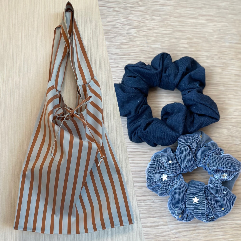[11歳娘と在宅day]娘はアップサイクルのシュシュ、私はエコバッグ作りを。【手づくり部】