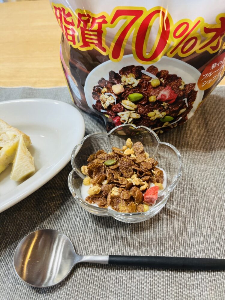 朝食&おやつのおかわりに「素材まるごとグラノラ 脂質70%オフ 華やぐフルーティショコラ」を頼ってます!