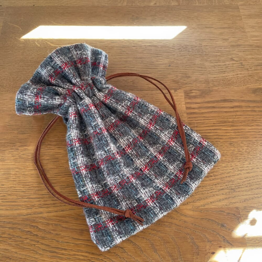 尾州ウール地で巾着ポーチを作りました【手づくり部】
