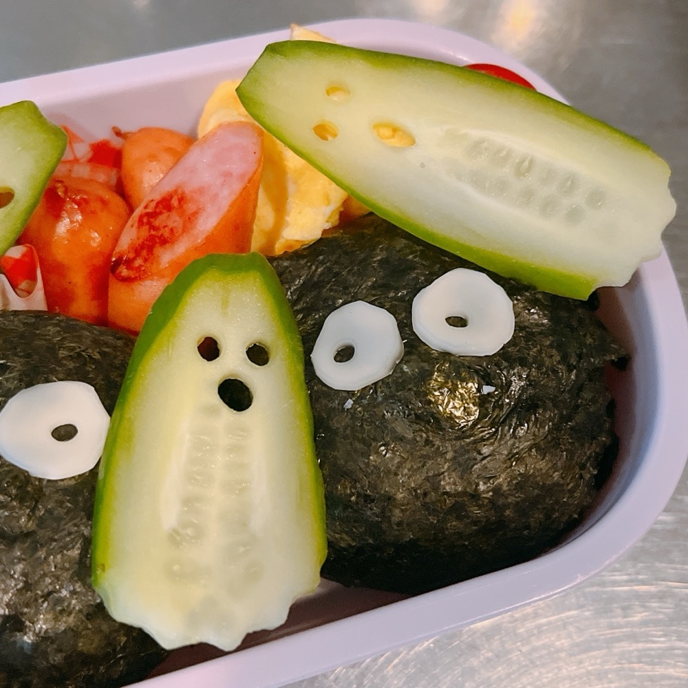 【ハロウィン弁当】これからの定番になりそう!ストローで抜くだけ!きゅうりおばけのハロウィン弁当
