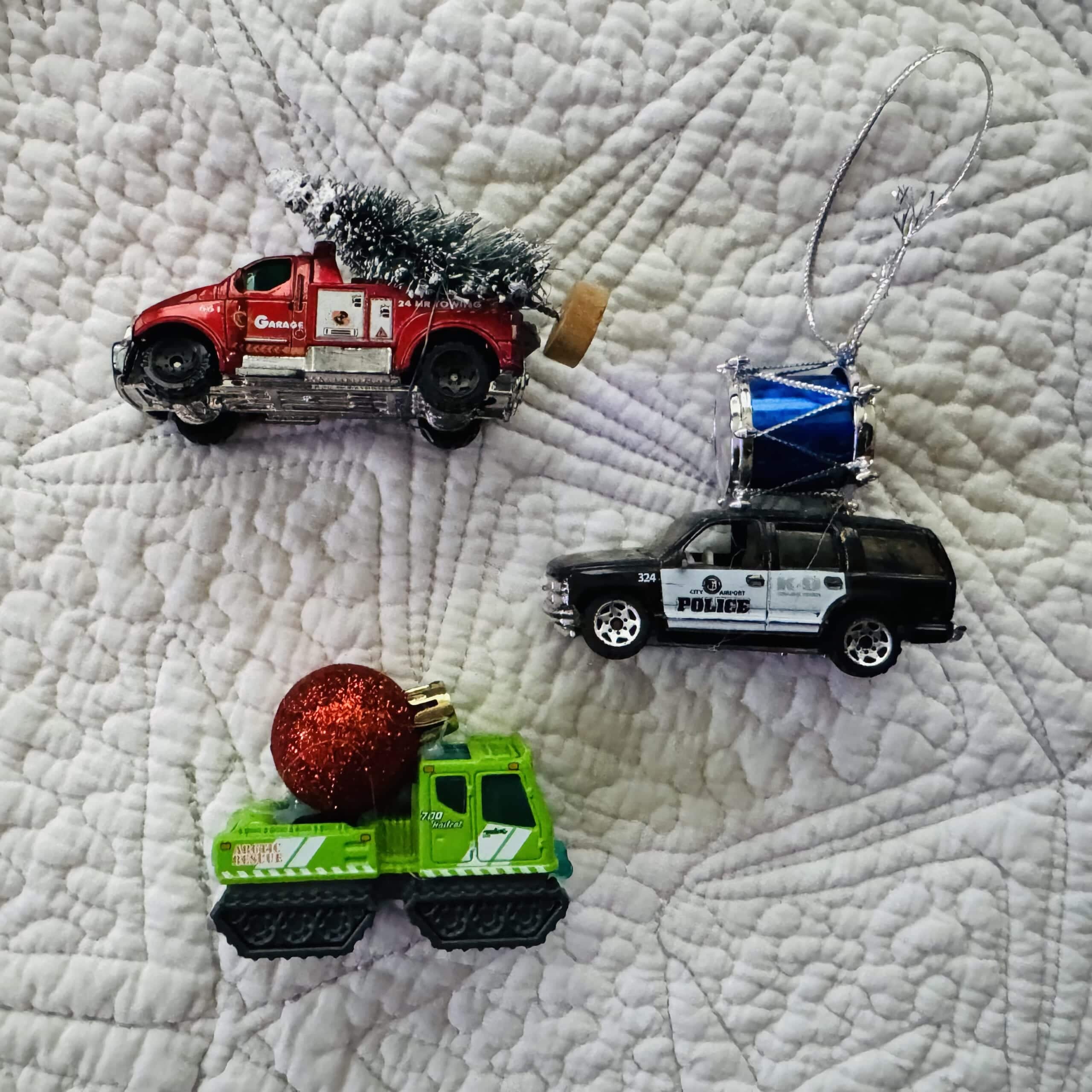 おもちゃ遊び卒業、ミニカーで、おままごとグッズでオーナメント作り