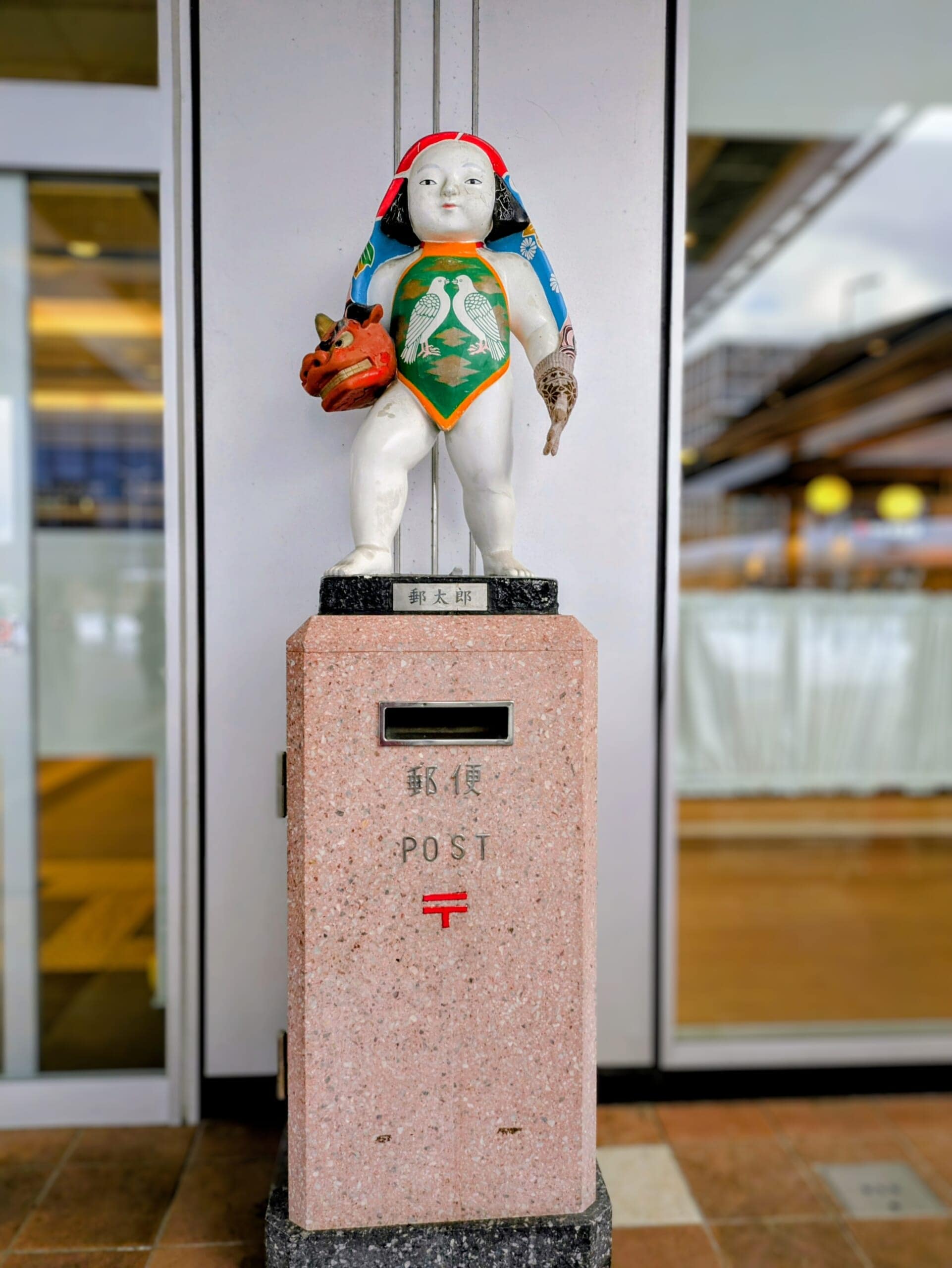 雪の【金沢駅】と加賀人形の【郵太郎】ポスト
