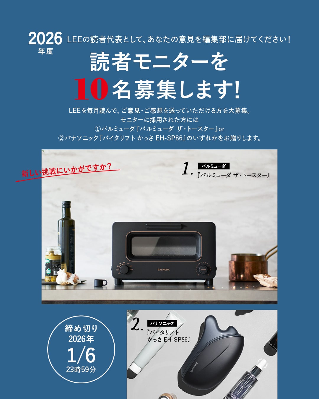 【2026年度LEE読者モニターを10名募集!】採用された方にはバルミューダ『バルミューダ ザ・トースター』orパナソニック『バイタリフト かっさ EH-SP86』のいずれかをお贈りします