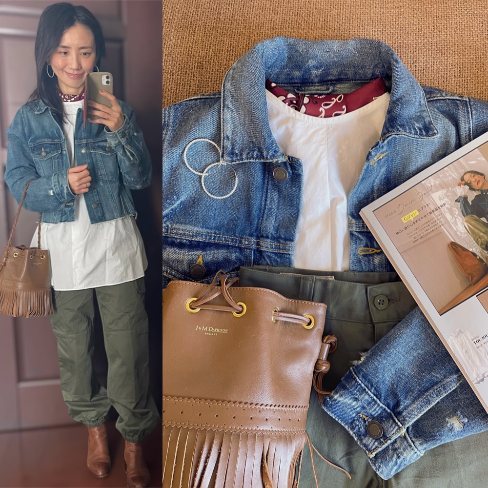 [まねっこコーデ]ラフすぎ?の解決に白シャツ&スカーフが活躍の予感です。【LEE3月号】