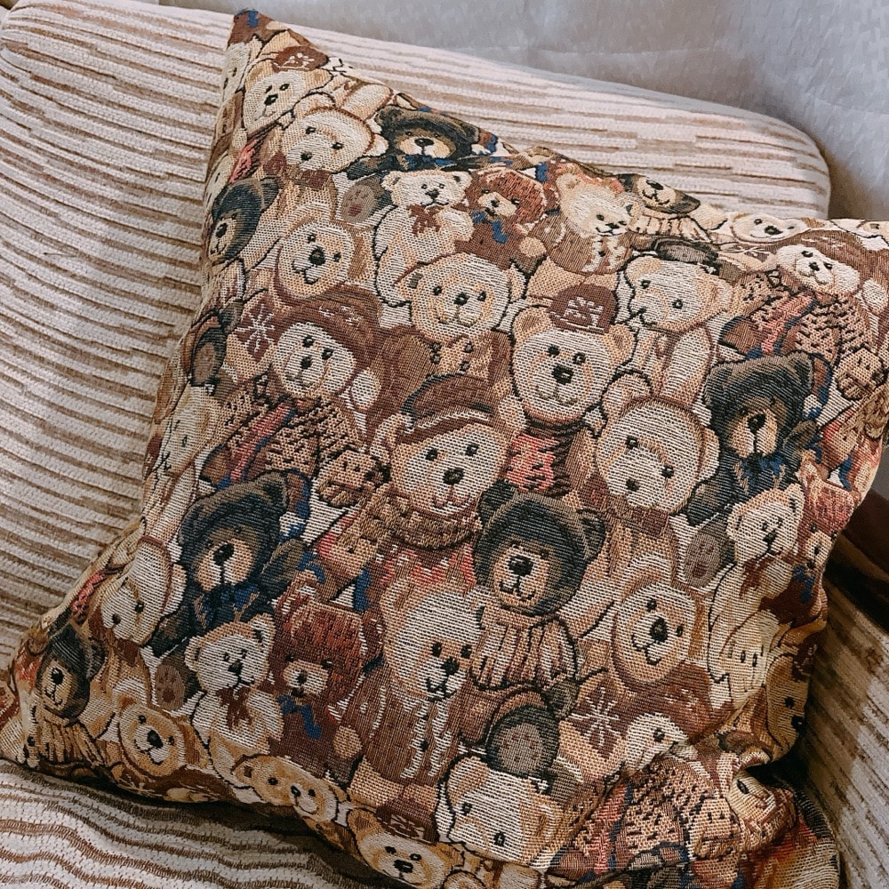 【簡単ソーイング】プチプラ素材でつくるテディベア柄のクッション