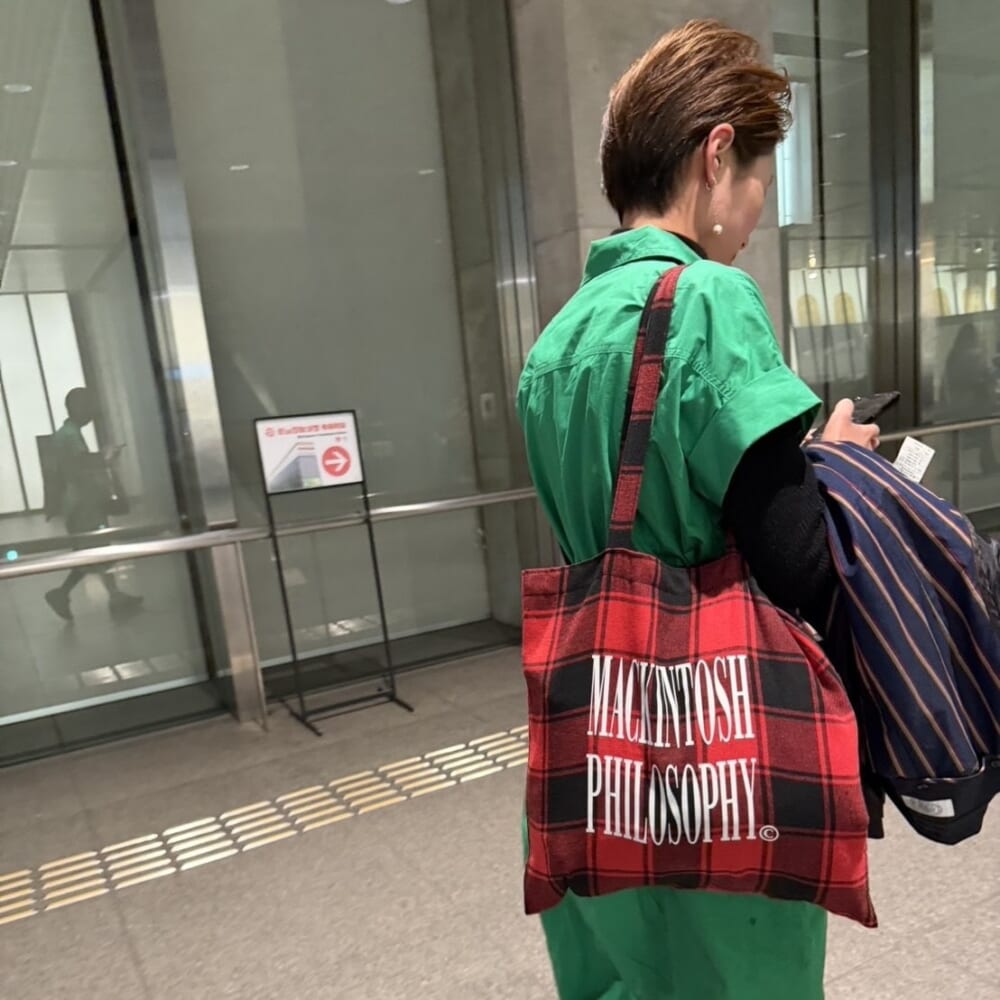 MACKINTOSH PHILOSOPHY大人のチェックBIGトートバッグで、地味色カジュアル派コーディネート