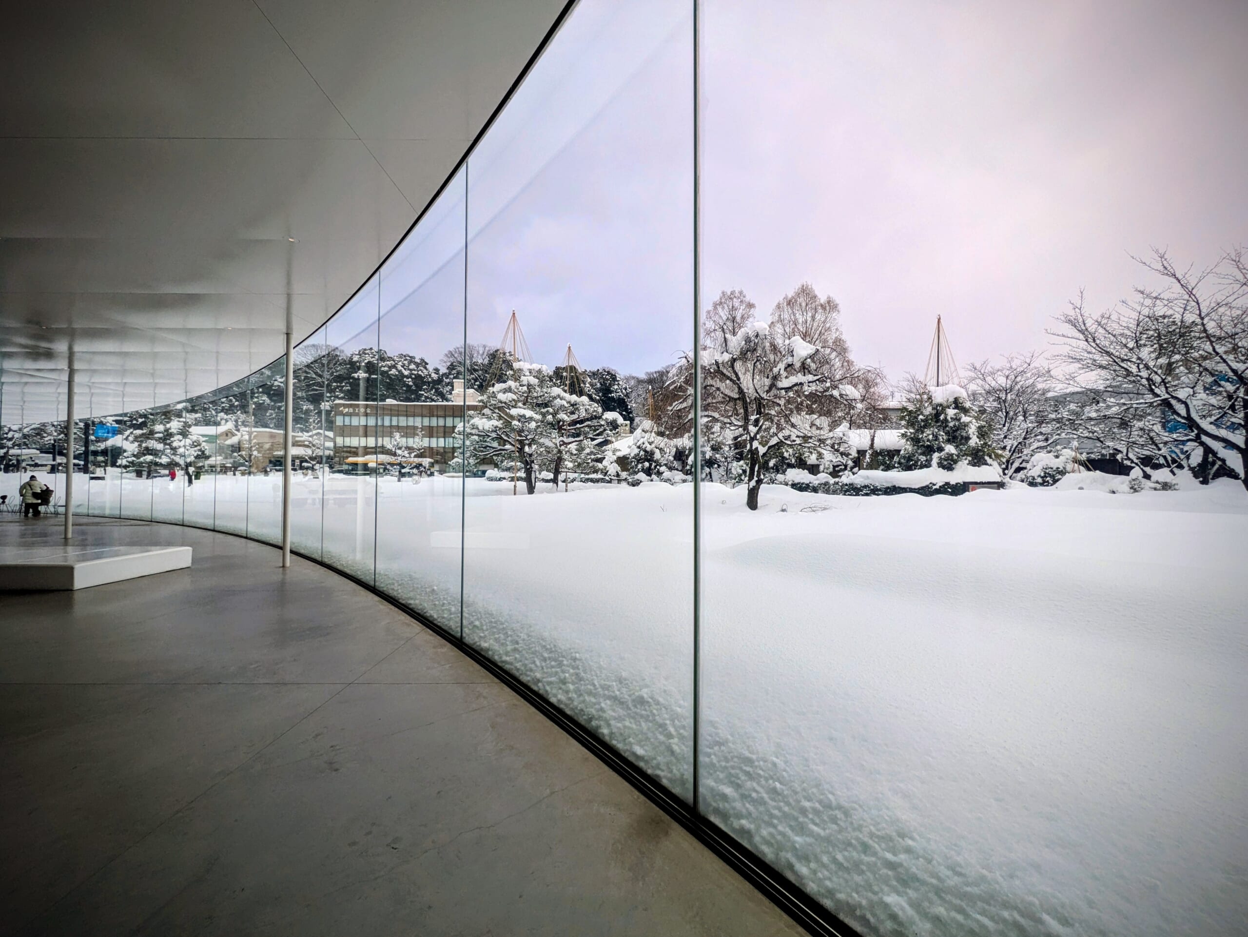 たくさん雪が積もった石川県【金沢21世紀美術館】はこんな雪景色です