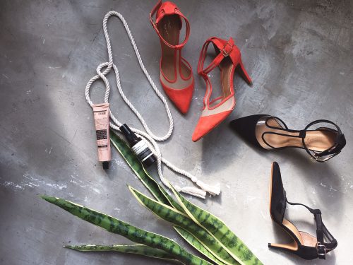 Daniella&GEMMA Tストラップセパレートパンプス 色展開:Orange, Black(Vinyl), Black(Tulle), Green, Gray ¥18,000(消費税別)