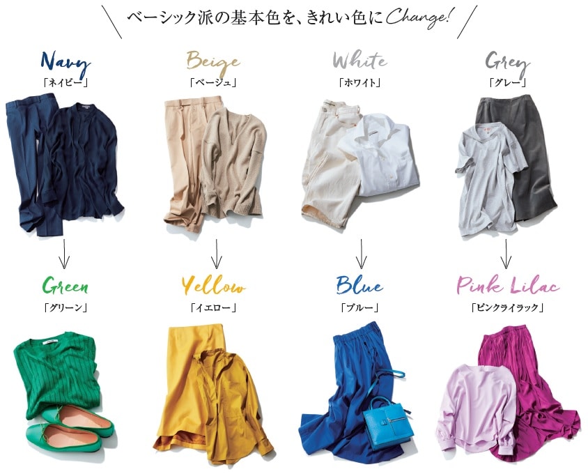 ベーシック派の基本色を、きれい色にチェンジするだけでほら!