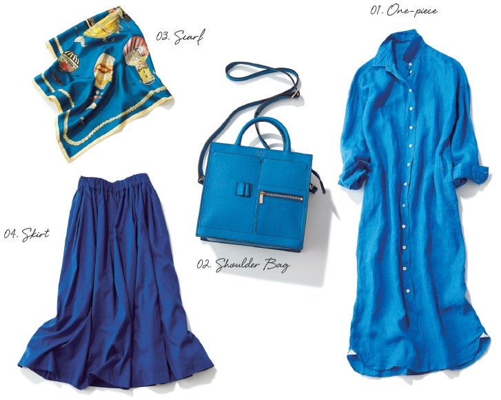 きれい色の中でも、定番色の延長として、最も取り入れやすいのが「ブルー」。今シーズンは流行に乗って、どのブランドからもバリエーション豊富にアイテムが続々登場!