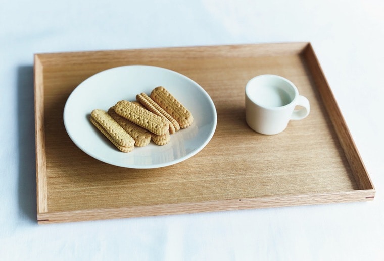 「サイズ感と軽さがちょうどよく、子どもの食事をのせるトレーとして使っています。シンプルさもいいです。食事の準備や片付けもスムーズにできておすすめです」