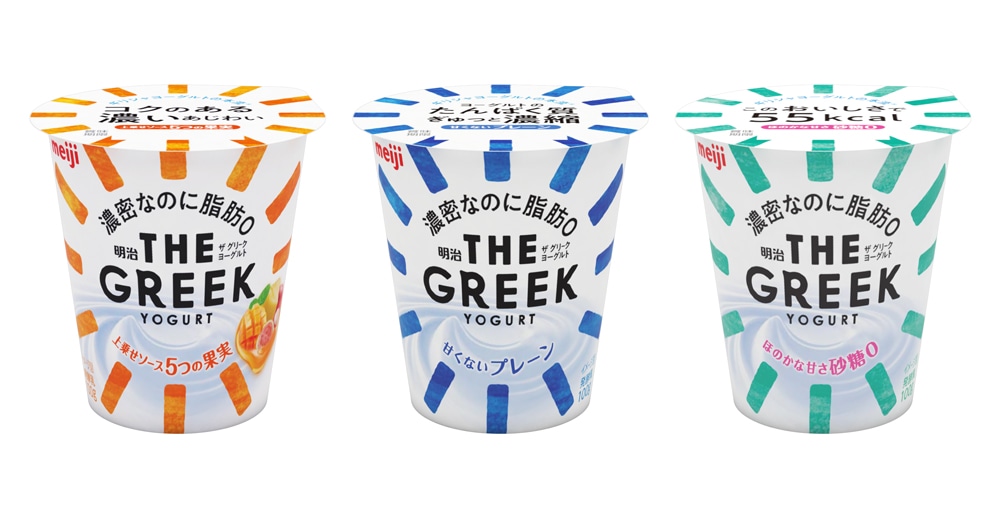 4月、新たにお目見えした「明治THE GREEK YOGURT」シリーズは、脂肪0でさらにヘルシーな仕上がりに。