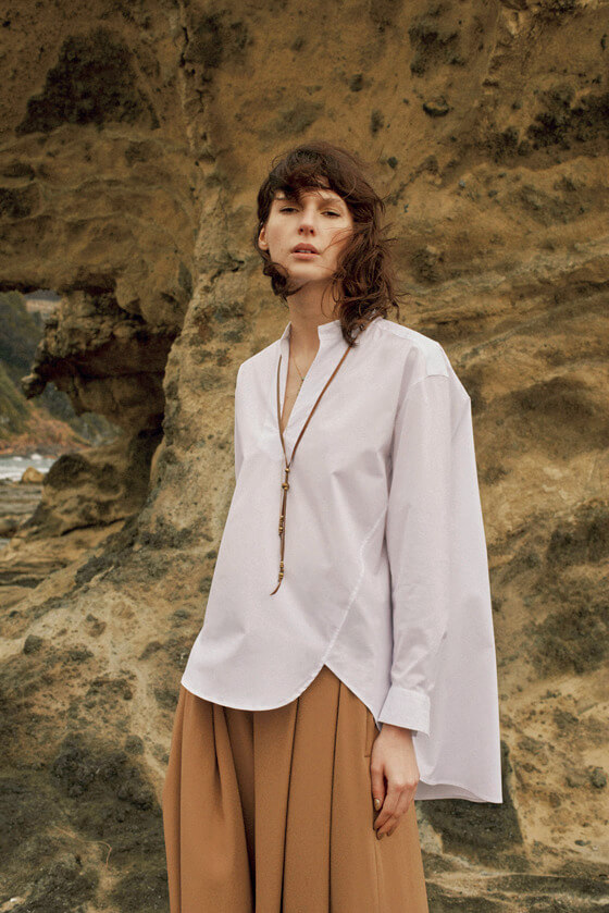 日本のものづくりを世界に広めたい、という想いのもと生地、パターン、縫製のすべてをメイドインジャパンにこだわった、品質の高いベーシックなシャツがメイン。着こなし次第で表情が変化するシンプルな洋服は、まとうだけで自分らしさが宿ります。