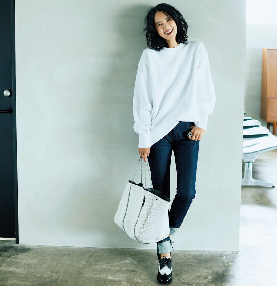 澄み切った気持ちのいい白が、見慣れたスウェット×デニムコーデをリフレッシュ!