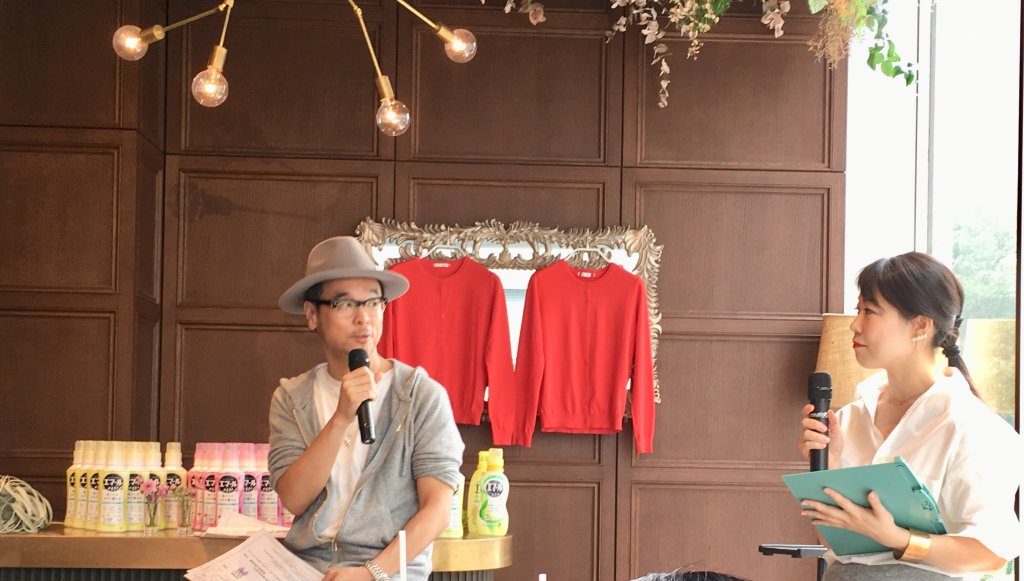 製品発表会では、スペシャルゲストとしてファッション&占いエディターの青木良文さんが登場。布を清潔に保つことの大切さをうかがい、お洗濯へのモチベーションがアップしました!
