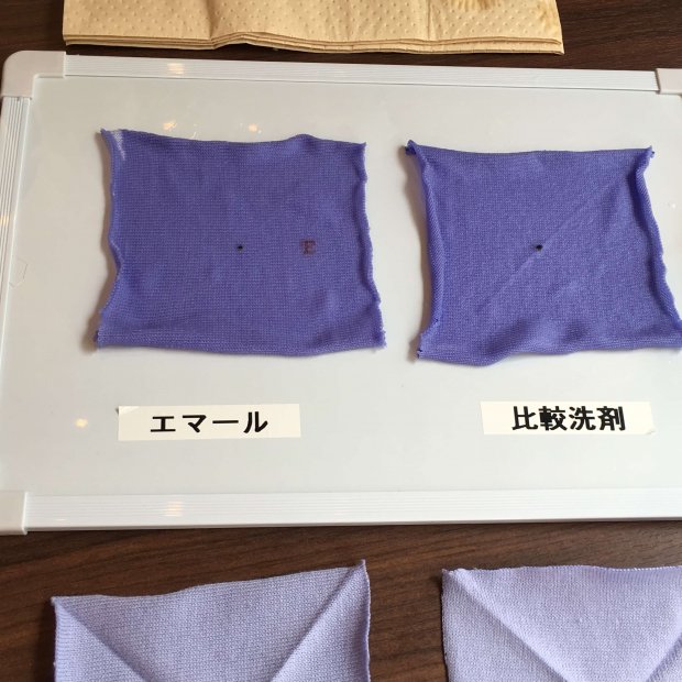 また、製品発表会の実験では、「エマール」と「比較洗剤」