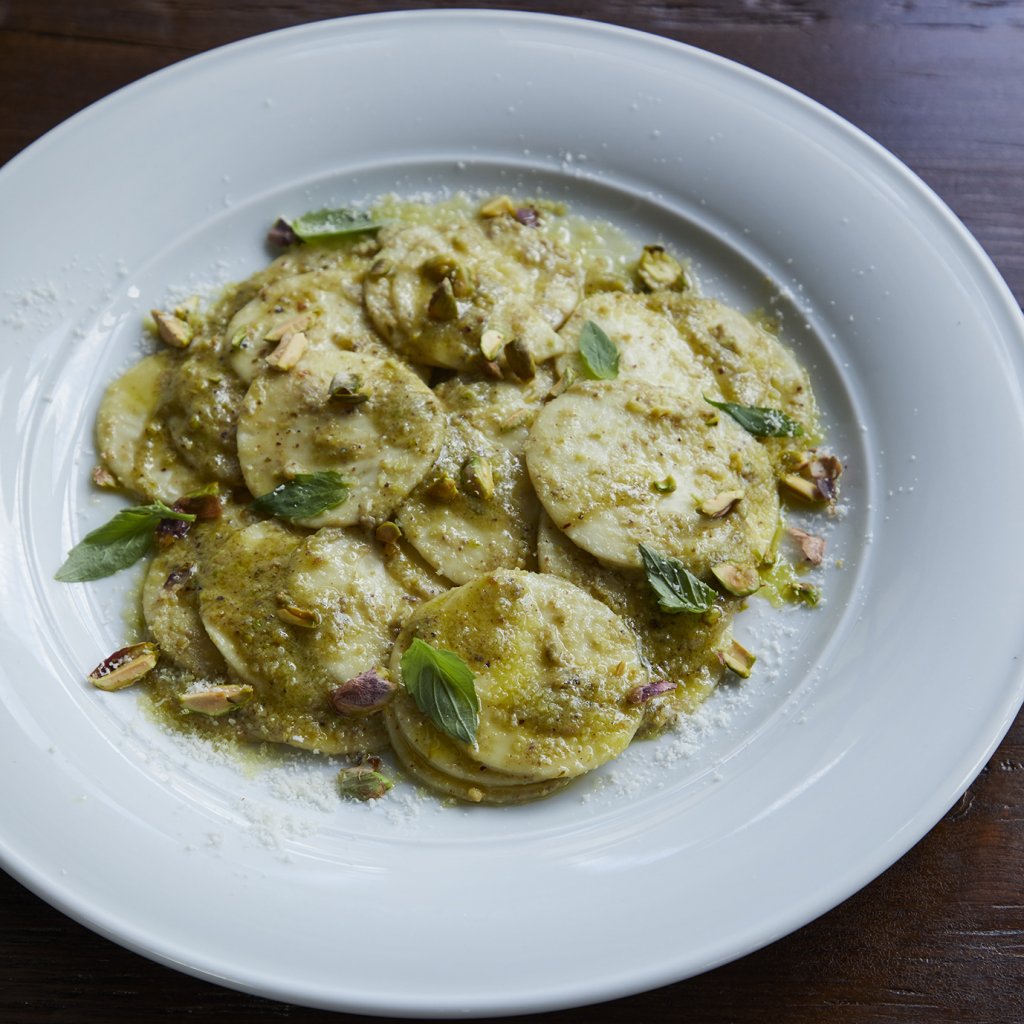 ピスタチオのまろやかな甘みとコクのベースに、フレッシュなバジルと食欲をわかせるガーリックの香り、グラナパダーノのミルクの旨味、がバランス良く組み合わさったことによって豊かな味わいが楽しめます。