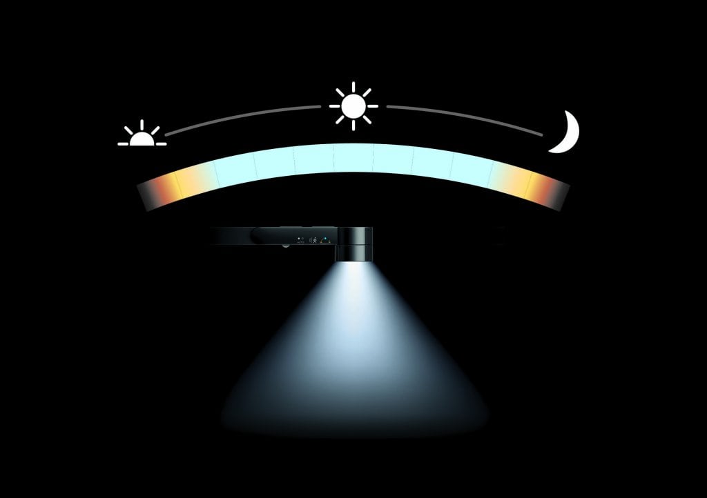 一番の特徴は、使用する時刻と場所に応じ、現在地の自然光にあわせた色温度と明るさに調節してくれること。