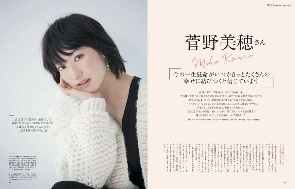 このカバー撮影前に、第2子妊娠を発表。ふんわり優しい笑顔で、現場は幸せオーラに包まれました。昨年は、『ひよっこ』や『監獄のお姫さま』など人気ドラマに出演、この冬には2児のママになる菅野さん。3歳の息子さんの育児に追われながら、慌ただしい毎日を送る彼女に、日々の暮らしのこと、今の心境についてじっくりお聞きしました。