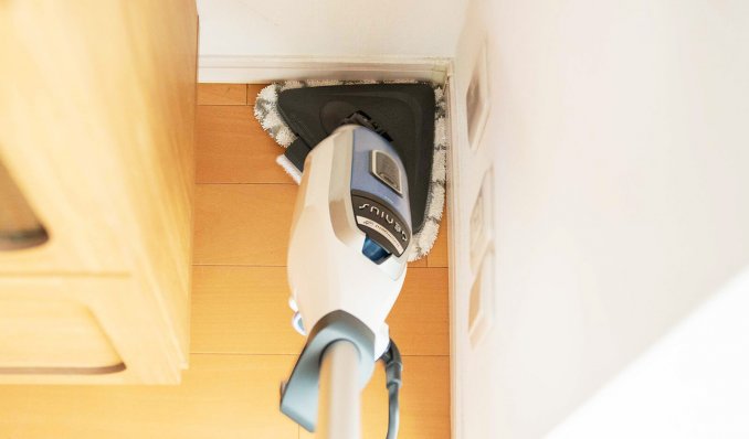 「Shark スチームモップ」は、コンパクトなモップヘッドで届きにくいスペースのお掃除も可能に。