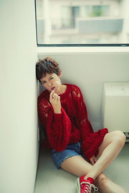 「透け感があるので、インナーのキャミソールで遊ぶスタイリングにもトライしたい。例えば黒のニットのインナーに、あえてカラフルなキャミソールを合わせるのも今秋は新鮮ですね」(花楓さん)