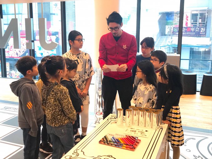 抽選で選ばれた小学生の子どもたちと、ビュフさんがご対面。実はビュフさんは来日11年目と、日本語ペラペラ。「みんな、こんにちは!」と明るく出迎え、これから何をするかを子どもたちに教えてくれます。