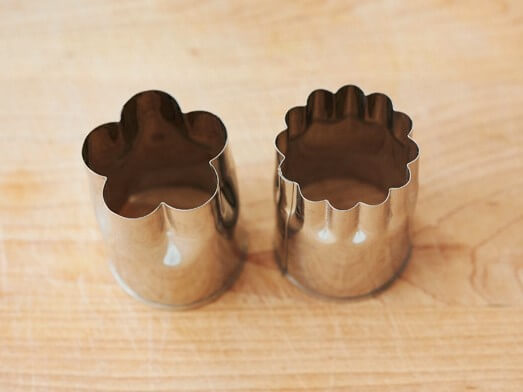 抜き型は、直径4 cmほどのものが扱いやすくて◎。そろえたいのは梅と菊。百貨店の調理用品売り場や100円ショップで。