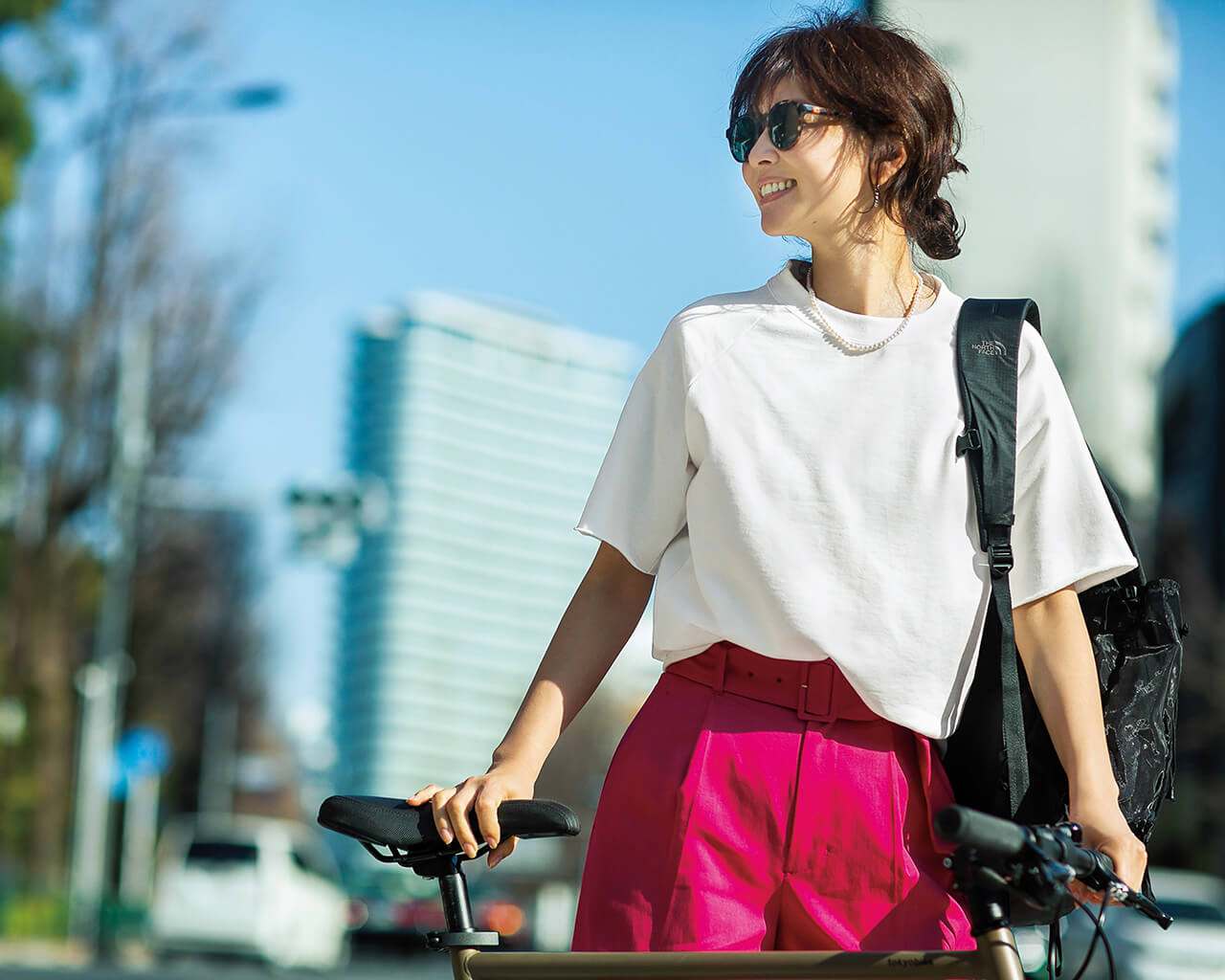 撮影/須藤敬一(モデル、ロケ物) 坂田幸一(物) ヘア&メイク/吉岡美幸 スタイリスト/石上美津江 モデル/五明祐子 取材・文/鈴木絵美 撮影協力/tokyobike