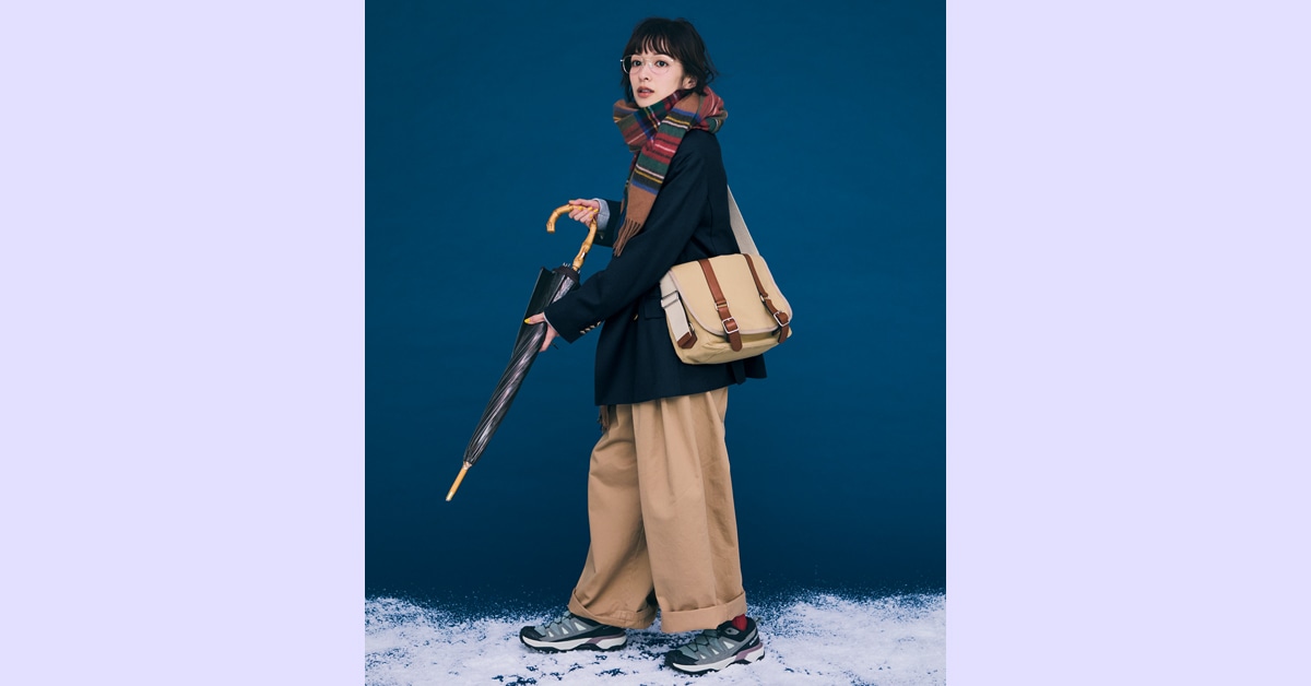 雨や雪で不安定な路面でも活躍する高機能なスニーカーが、トラッドコーデのはずし役にも◎/明日なに着る?
