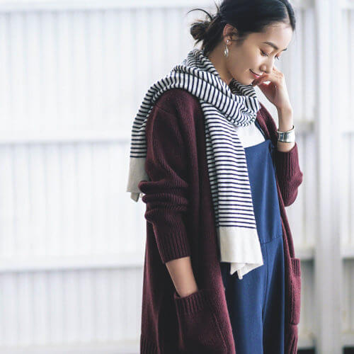 いずれも飽きがこず、長く使えるデザインと上質な品質なので、ストールは無地、ニットはボーダーなんていう贅沢なセット買いも、オススメです。