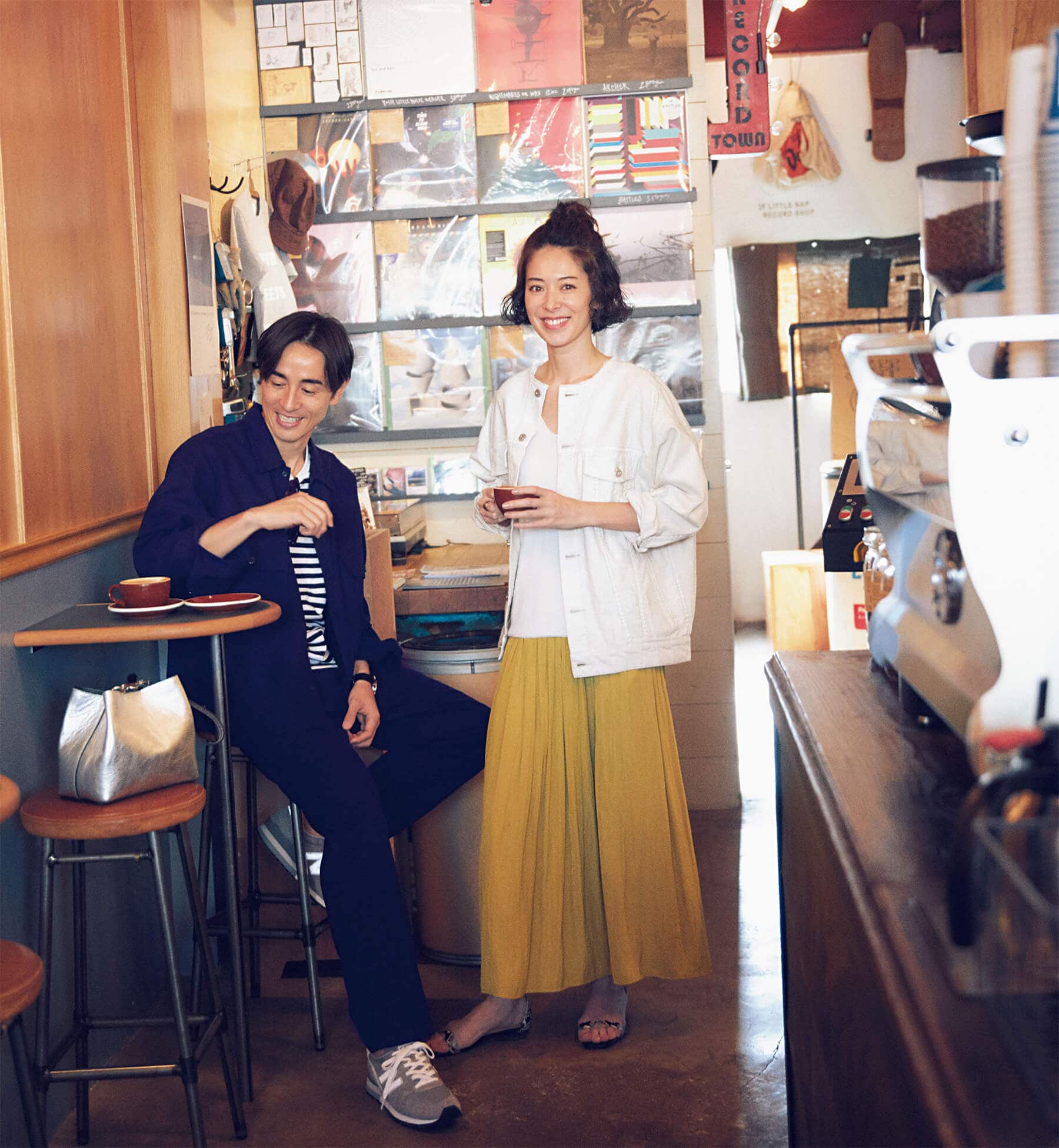 (女性)Gジャン ¥12700・ニット¥8100・スカート¥10000(すべてシップス エニィ)・リング¥7700(チビ ジュエルズ)・バッグ¥10900(ビアンキーニ)・サンダル¥6800(テリック)/シップス エニィ プレス