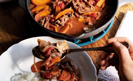 【時短!ごちそう煮込みレシピ】フライパンひとつで「牛肉とにんじんのトマトバター煮込み」