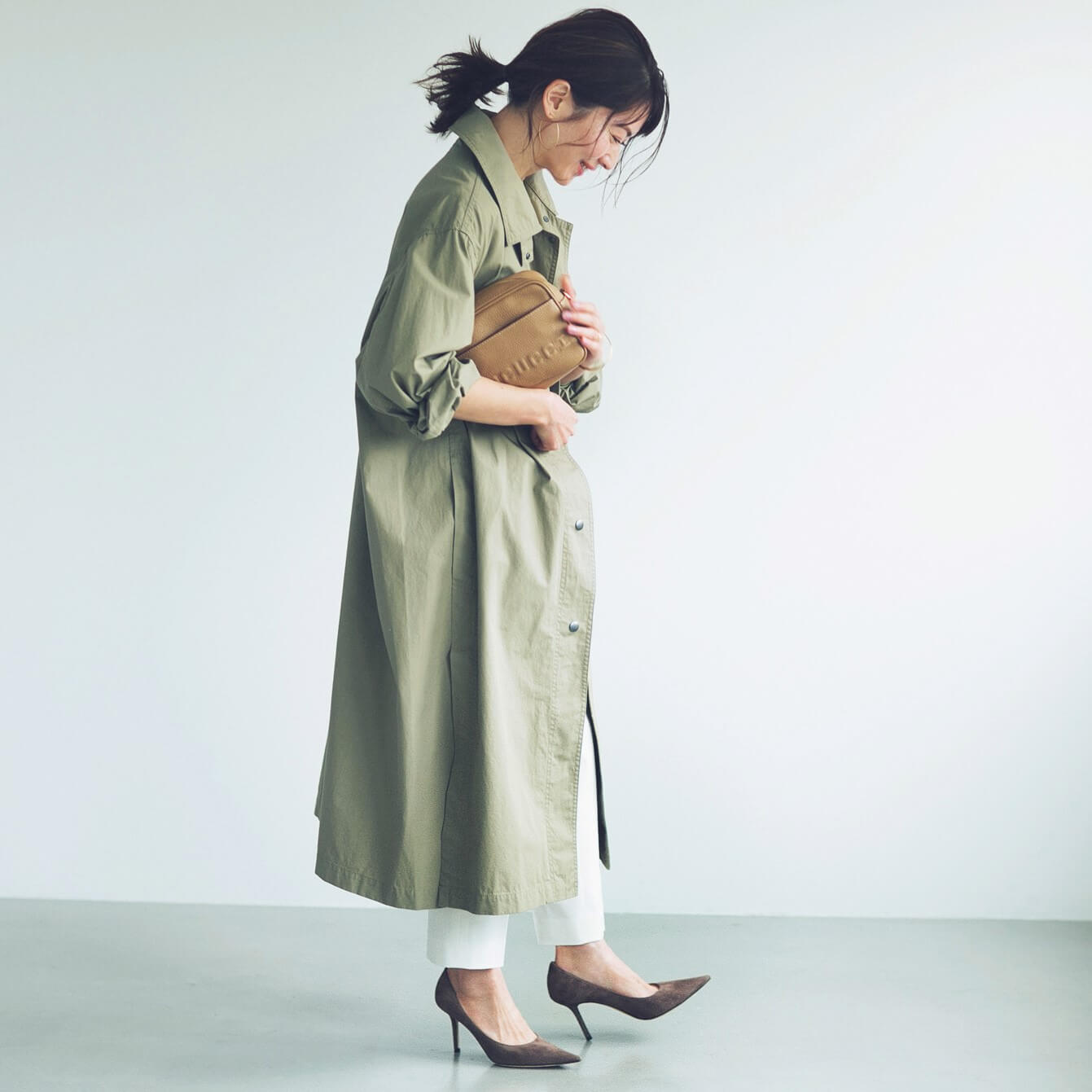 「男っぽいカーキを着るとかえってヘアやメイクの可愛さが引き立ったりと、女らしさを引き出すうえで効果的な辛口カラー。そんな辛さとほどよいキャッチーさを持ち合わせたグリーン系に惹かれがち」(伊藤真知さん)