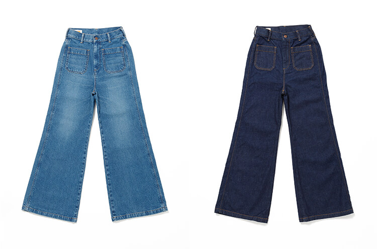 日本発の国産デニムブランド「ビッグジョン」からは、フレアデニムが登場。フロアのパッチポケットがポイントのデニムは、程よく肉厚な素材で体型をカバー。膝から下の絶妙な広がりで美脚見えを叶えてくれます。
