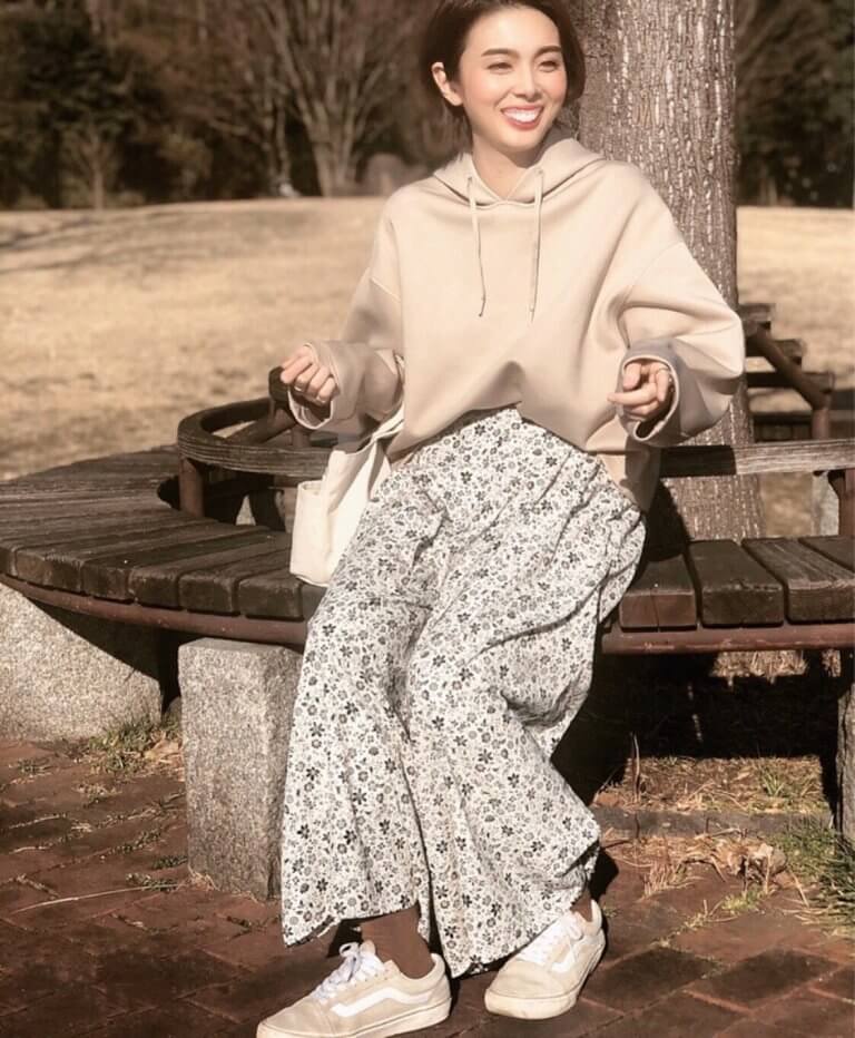 【6・TB アオイさん】「100人隊が買ってよかった〜と可愛いコーデをクリップしているのを見て、やはり買うべきなのねと思ったところに先日SALE価格がやって来て、いざ急げとUNIQLOへ。目分量で即決ベージュのL、お買い物10秒フィニッシュ!スカートに良し、デニムに良し、運動する時にジャージに合わせても可愛かったですよ。袖口をまくって着るのが可愛いくてオススメ♡春の気配を感じるからでしょうか、優しい色に惹かれます」