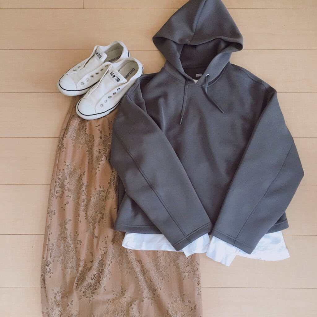 【3・No.093 kyonさん】「以前おさきちゃんとなっちんがクリップにあげていた、UNIQLOのドライソフトスウェットプルパーカ。店舗で手に取った瞬間、高見え感に驚きすぐさま試着(笑)」