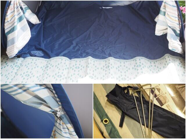 「テントって秘密基地みたいで子供のテンションが上がります。ベランダには花を植えたところなので、春も感じられて楽しいです。コンパクトに折りたためるので、落ち着いたらピクニックにも使いたいです。フルクローズできるので、中で着替えもできます。ペグも付いていました」