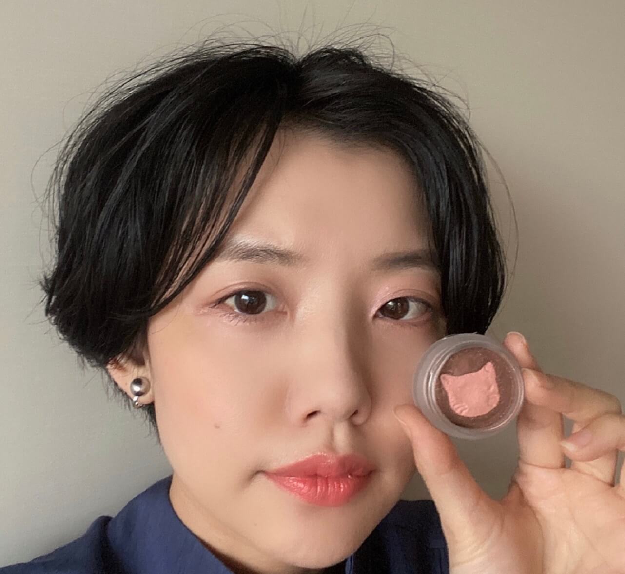 「アイカラーはしっとりしていて、でもギラつくことなく、本当に使いやすいです。指にとってまぶたにのせるとすっと広がって、二度塗り、重ね塗りもカンタン!